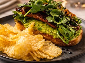 Avocado over a thick sliced French bread with Microgreens, Tomato and a balsamic drizzle. Add Hardboiled Egg and/Or Bacon to Make it even better